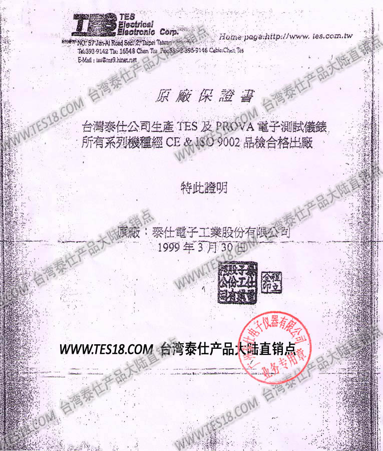 ![]() 泰仕TES產(chǎn)品原廠保證書 |